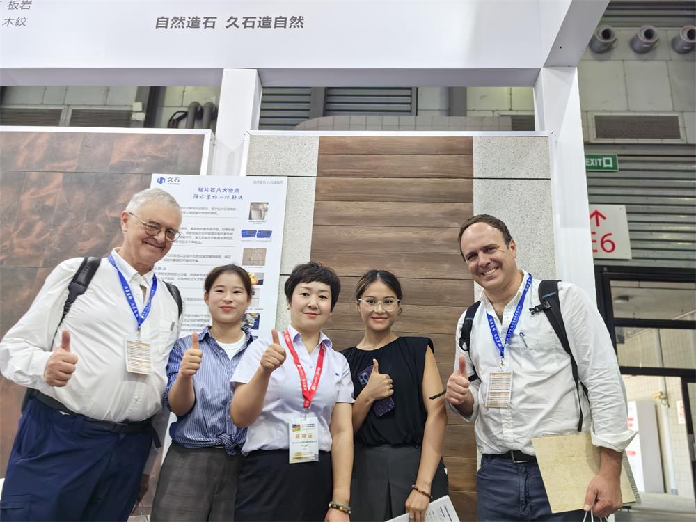 本次展會(huì)除了國(guó)內(nèi)觀眾,還有不少來(lái)自歐美、東南亞、俄羅斯等國(guó)的海外客戶,在上海這座國(guó)際舞臺(tái),久石的展位一如既往人氣十足,貼片石優(yōu)秀的裝飾效果和產(chǎn)品品質(zhì),吸引眾多海內(nèi)外客戶駐足觀摩和洽談。